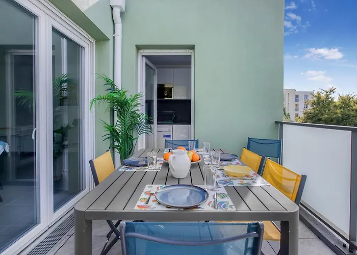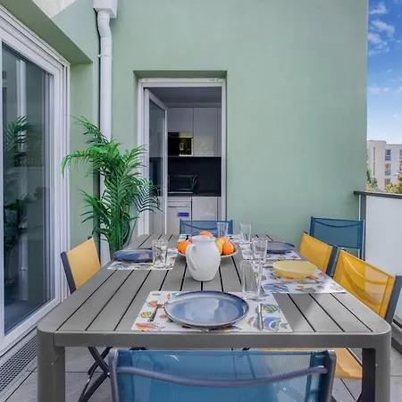 У Nouvelle Ere - Appt A Moins D'Un Km De La Plage є обладнана кухня з посудомийною машиною і духовкою для самостійного приготування їжі. Помешкання розташоване досить близько до найближчої автобусної зупинки Rond Point du Grand Bleu.